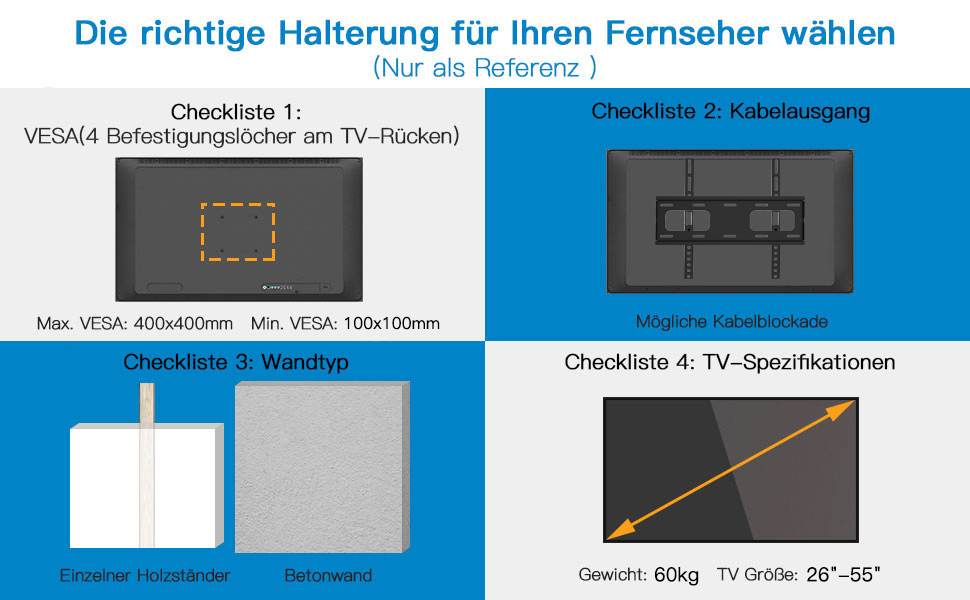Tv Wall Bracket Tilting Bracket For 26 55 Inch Flat Curved Television Or Monitor Up To 60 Kg Max Vesa 400 X 400 Mm Amazon De Electronics Photo